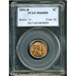<B>1931-D 1C MS65 Red PCGS.</B></I> Generally not located with such bright, lustrous surfaces, this is an unusually attractive and important example of this overlooked issue which has always been overshadowed by the lower mintage 1931-S. A few light specks of carbon are scattered over each side. Population: 128 in 65, 29 finer (1/05). Lot:5519