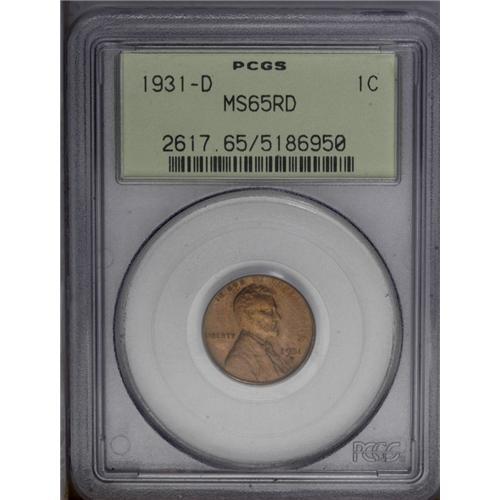 1931-D 1C MS65 Red PCGS. This lustrous Gem is crisply 1931-D[1C] MS65 Red PCGS.