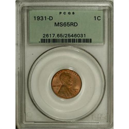 <B>1931-D 1C MS65 Red PCGS.</B></I> This brick-red cent has potent luster and only moderate carbon. Intricately struck, and the only perceptible mark is concealed above the cheekbone. In a green label holder.<BR><BR><B>Coin Engraver:</B> Victor D. Brenner<BR><BR><b>Shipping:</b> Coins & Currency (<a target="_blank" href="http://www.heritageauctions.com/common/shipping.php">view shipping information</a>)