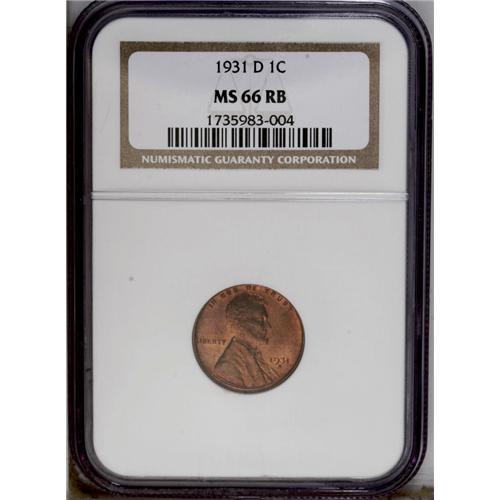 <B>1931-D<1C> MS66 Red and Brown NGC.</B></I> Gorgeous crimson-gold color dominates lustrous surfaces that exhibit sharply struck design elements. A couple of miniscule marks are noted on the reverse. Census: 6 in 66, 0 finer (3/06). <BR><BR><B>Important notice:</B> Heritage usually auctions material at the rate of 200-250 lots per hour. On some occasions eBay Live bid software or the Internet may not be able to keep up with the pace of the auction. We recommend placing a realistic absentee bid now as insurance to avoid disappointment. Occasionally the auctioneer may eliminate or reject an eBay Live bid, and the auctioneer may also reopen a lot after the close of the eBay live bidding (usually because we missed an audience bid), and may reject your bid even if it shows you as the winning bidder. By bidding via eBay Live, you agree that Heritage may award the lot to another bidder at its sole discretion under the circumstances described above or any other reasonable circumstances. Since eBay bids are not shown to us until we open the lot on the floor, we treat those bids just like floor bids. In most cases the floor responds before the eBay bid is presented to us, due to Internet lag time, so for consistency we have made it a policy that floor bids are always considered first over tie eBay live bids. Also please note that all Heritage lots purchased through eBay Live carry a 20% Buyer's Premium. Please make sure you read the Terms and Conditions before you bid. This lot is being auctioned in conjunction with a live floor auction by Heritage Galleries & Auctioneers. All final auction and invoice information will be supplied by Heritage Galleries & Auctioneers, and all other information should be considered preliminary. Lot:658 <BR><BR><B>Winning Notification and Billing:</B> After the FINAL session in this auction is complete, Heritage will send e-mail and snail mail invoices. This process normally takes several days. All final auction and invoice information will be supplied by Heritage Galleries & Auctioneers, and all other information should be considered preliminary. <BR><BR>This auction will be conducted on a live auction floor and over the Internet through eBay Live. If you choose to place an absentee bid, please take a moment to <font color='#0000ff'><u><a href='http://pages.ebay.com/liveauctions/help/before/laabsentee.html'>learn how eBay Live absentee bidding works</a></u></font><font color='#000000'>
