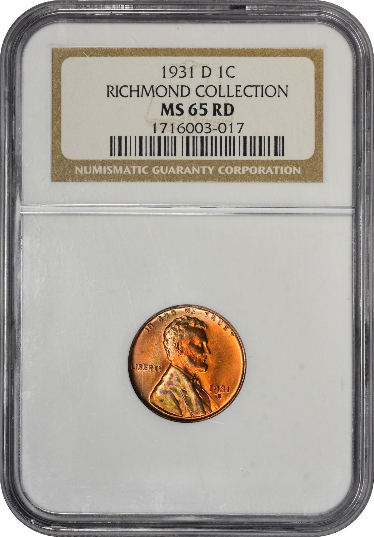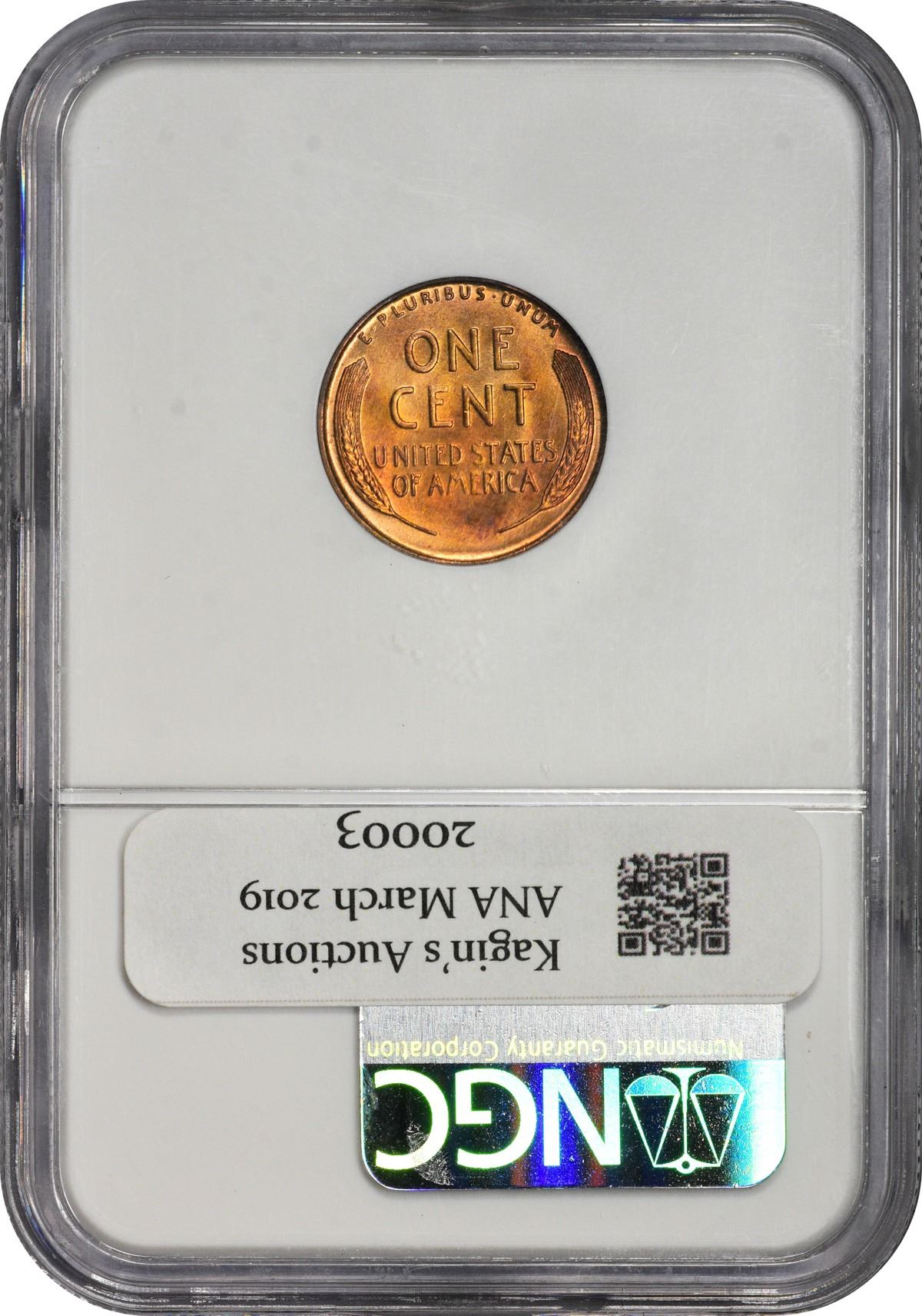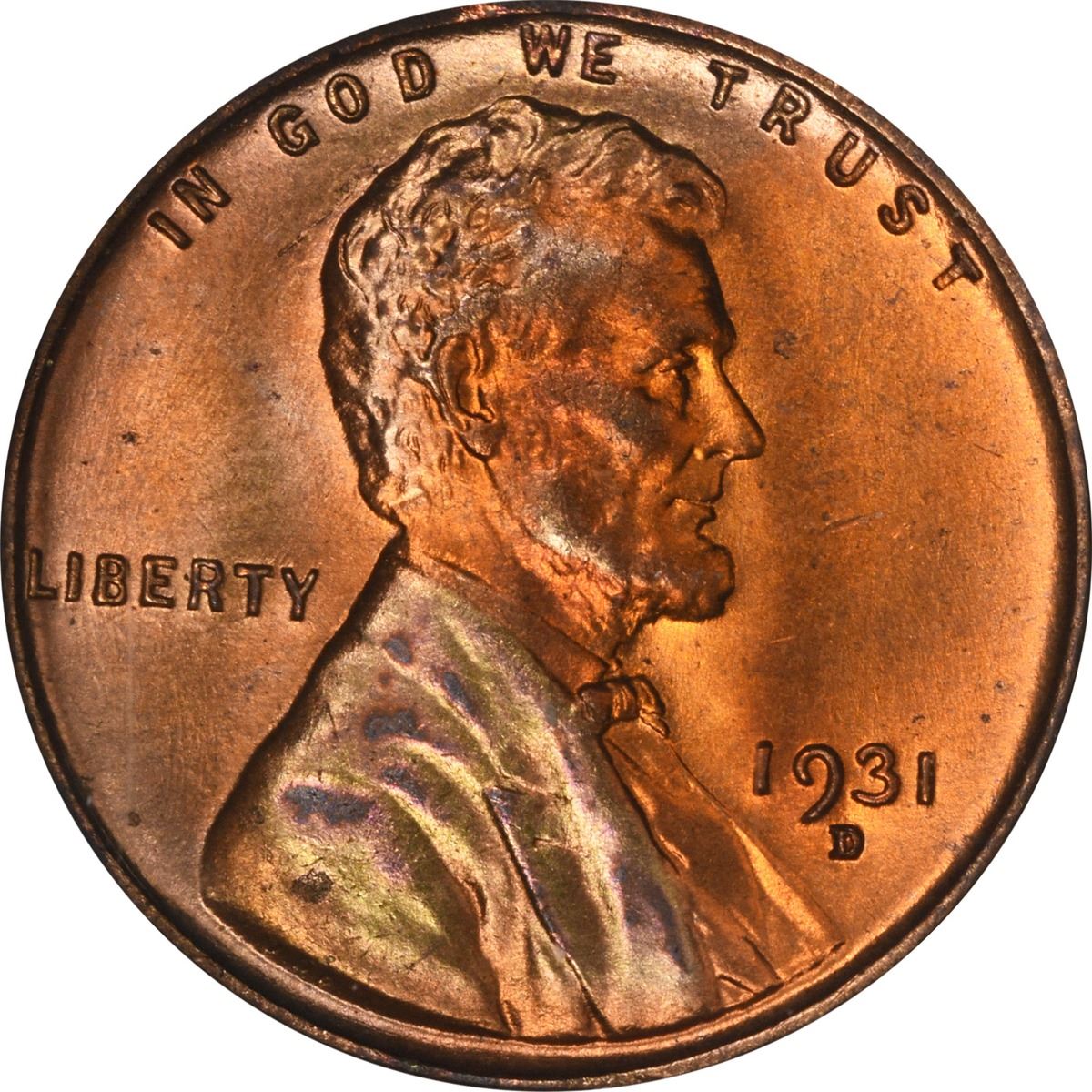 The boldly lustrous surfaces of this deep fiery orange gem support a whisper of rich steel blue iridescence on the obverse design high points. The reverse is afire with warm orange-rose and crimson toning highlights in a pleasing and non-distracting manner. With a modest mintage of just under 4.5 million pieces, this Depression-era date owns the lowest production figure of any Denver Mint cent from 1931 to the present day. A worthy specimen that would do well in any advanced collection.