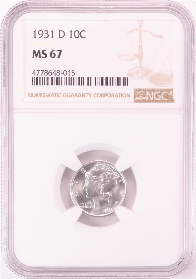 One 1931-D Mercury Dime Coin NGC MS67. NGC Certified.