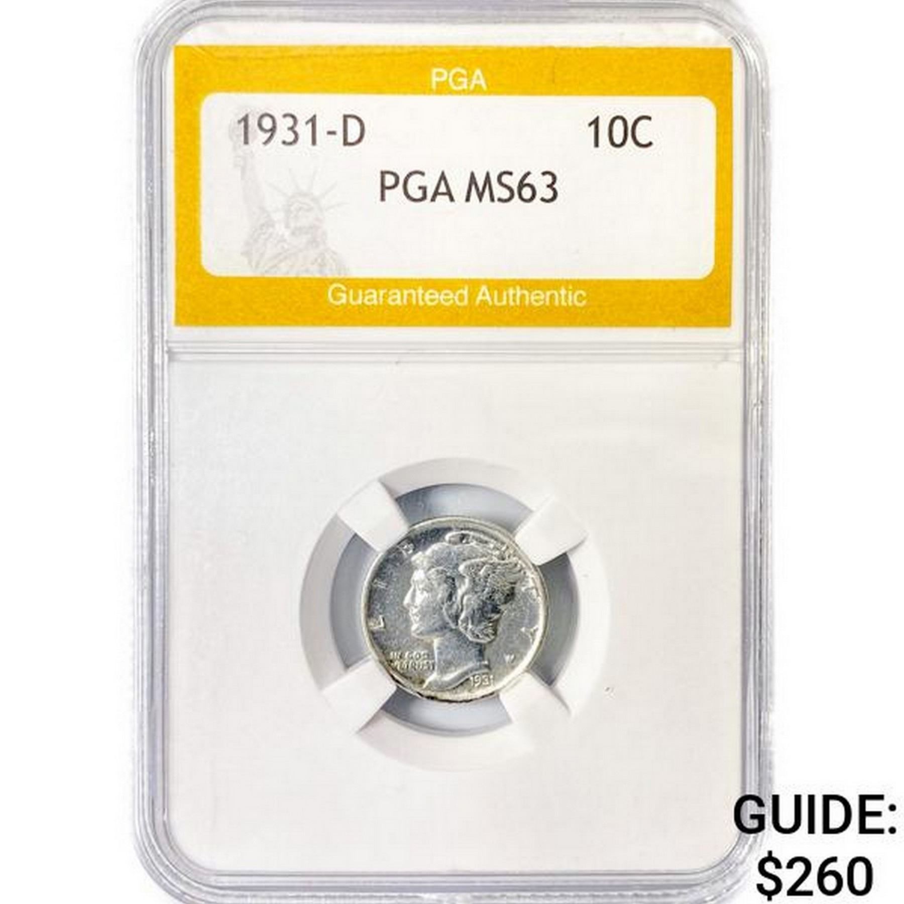 1931-D Mercury Silver Dime PGA MS63