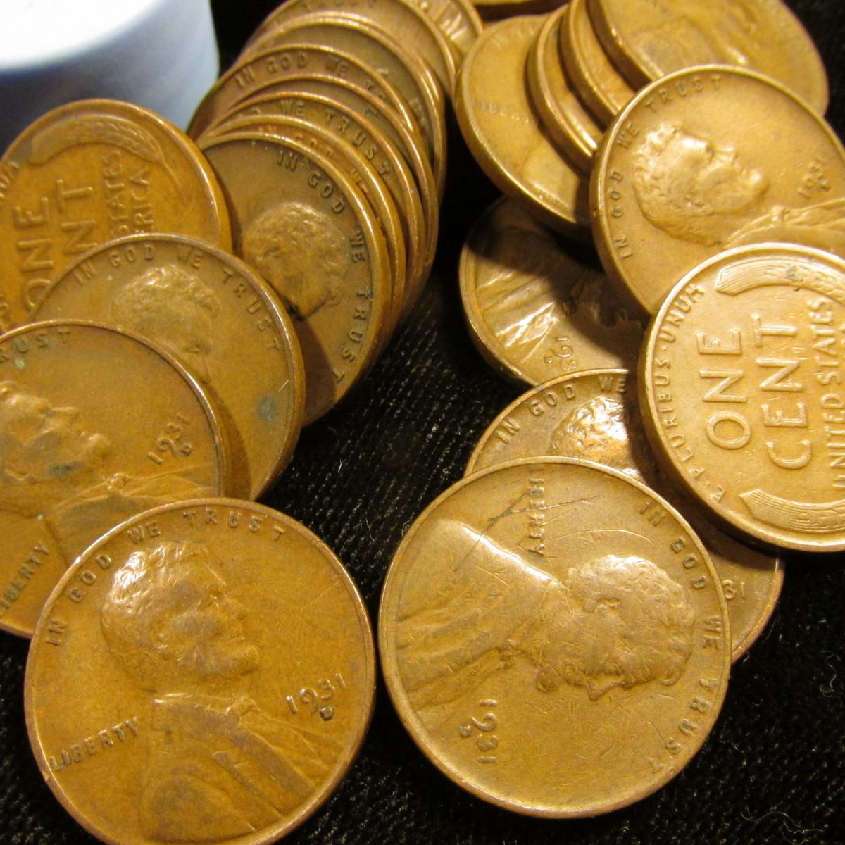 1931 D Solid-date Roll of Lincoln Cents (more than 50 pcs.) Many grade up to EF.