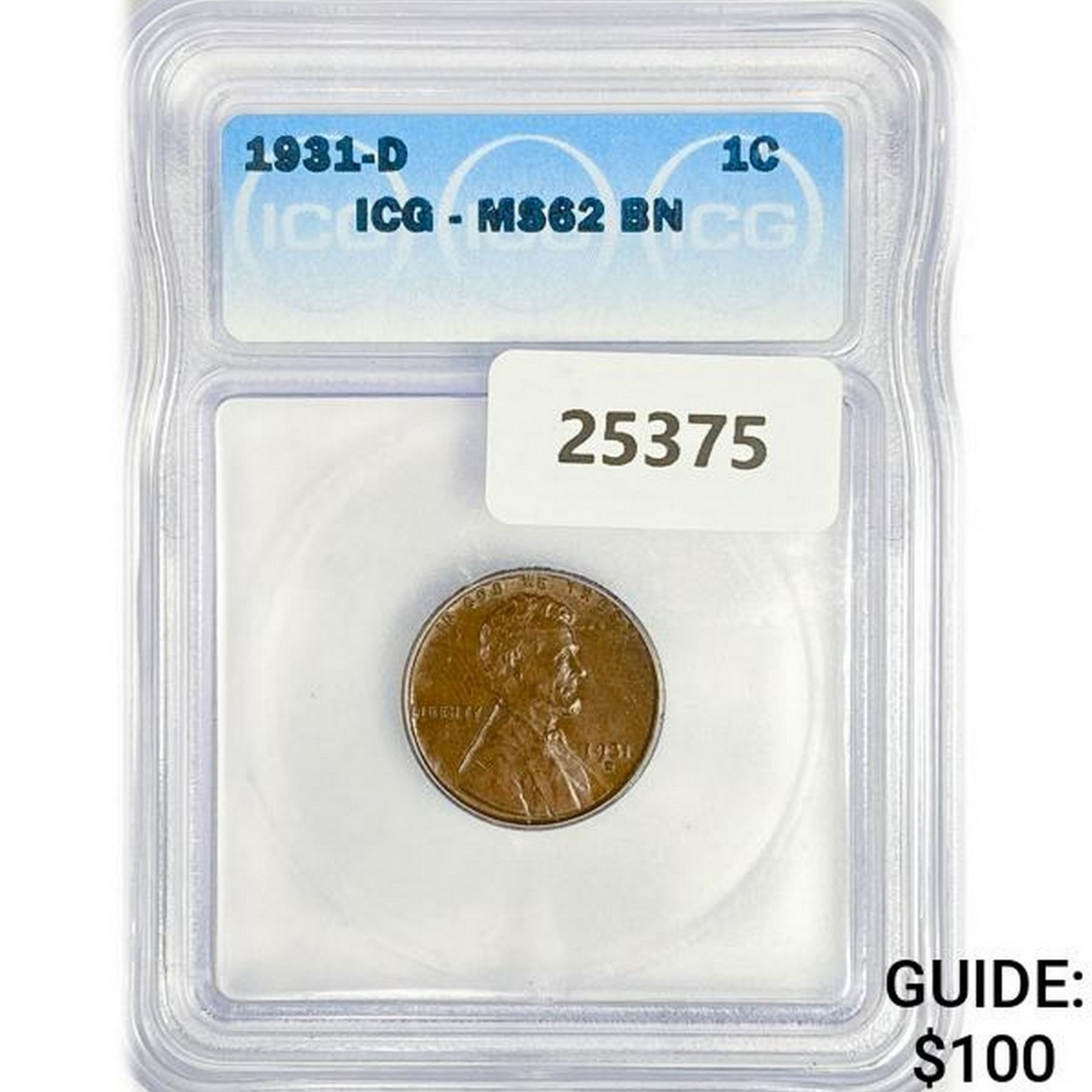 1931-D Wheat Cent ICG MS62 BN