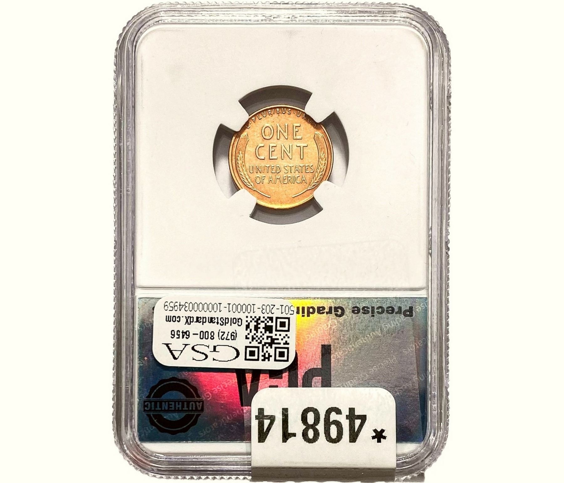 l. All non-certified coins and currency are guaranteed genuine, but are not guaranteed as to grade, since grading is a matter of opinion, an art and not a science, and therefore the description rendered by GSA or any third-party grading service may not agree with the opinion of others (including trained experts), and the same expert may not grade the same item with the same grade at two different times. GSA may, but is not obligated to, express an opinion as to non-certified numismatic items, in GSA’s opinion, or by its employees’ experience and the current interpretation of the American Numismatic Association’s standards as of the date the catalog was prepared. There is no guarantee or warranty expressed or implied that the grading opinions utilized by GSA, if any, will meet the standards of any grading service at any time in the future.