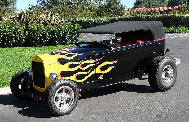 1931 FORD HIGHBOY PHAETON HOTROD! This Gloss Jet Black Beauty with Bright Yellow & Orange Flames is a Crowd Pleaser ! Pro Built 1932 Ford style frame designed for Model A Bodies by LRS Co. in MO. Cost alone for just the Stage 3 style frame was $5000 ! Very high-quality fiberglass body by Wescott, the best in the hotrod industry. Lift-Off Padded top. Steel Hood. Ford 302 V-8 Roller Motor with thump'n Roller Cam. Roller rockers. Ported & Polished heads. Edelbrock Intake and Carb. Fresh rebuilt Ford C-4 Automatic Trans ! New Custom exhaust with megaphone tips that Sounds Awesome ! Custom Pleated Upholstery. Custom TCI gauges. Lokar floor shifter. Chrome Alternator. Aluminum Air Cleaner & Valve Covers! Front Disc Brakes! Chopped Chrome Windshield! Chrome Radiator Overflow Tank! Chrome Headlights! Walker radiator w/ electric fan. New Halibrand style wheels and tires. Dropped tube axel & 4-bar setup. Chrome shocks & triangulated 4 bar rear with Carrera coilover shocks. Speedway quick-change cover on the 8:8 Ford rear end. New Vega steering box. Huge 31 x 12.50 Rear Tires! Low Miles! This just Screams Hot Rod in Looks & Sound! Own a Truly different Hot Rod, a Highboy Phaeton! You can take this Clean Attractive Streetrod to Car Shows Now!