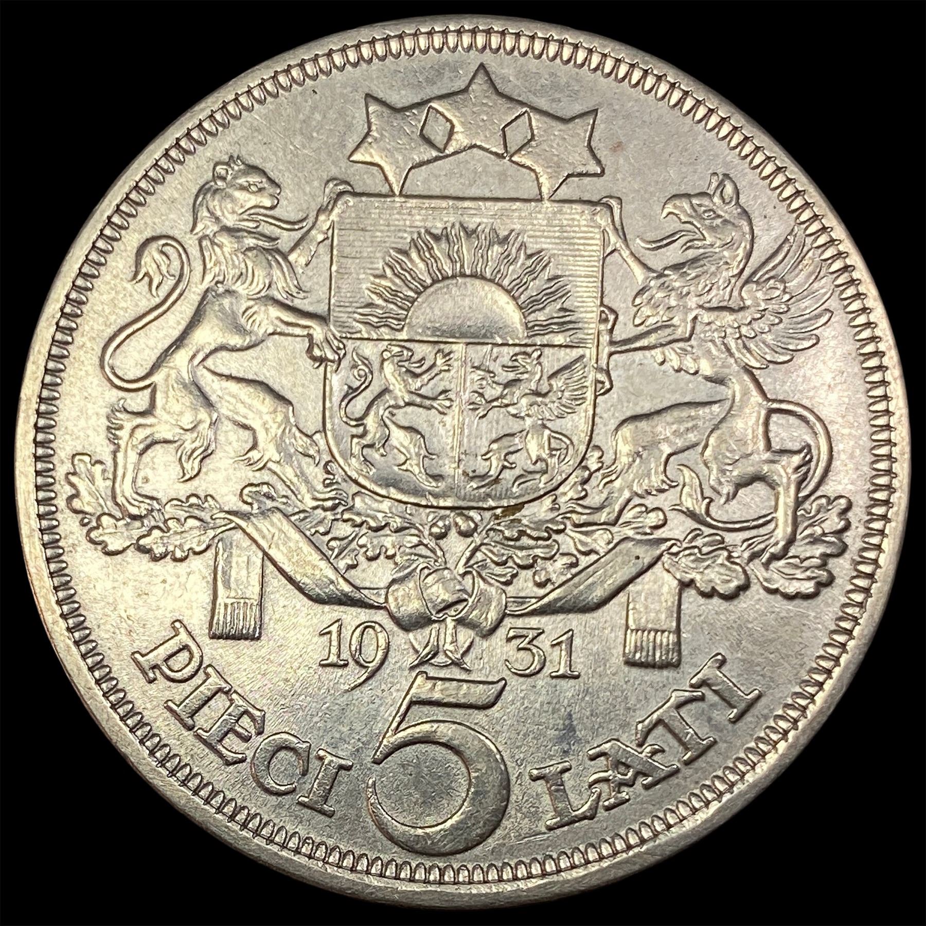 1931 Latvia Silver 5 Lati CLOSELY UNCIRCULATED