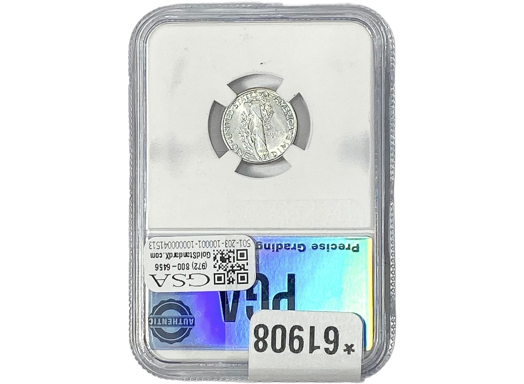 COINS AND CURRENCY LISTED IN GSA’S CATALOG AS GRADED AND ENCAPSULATED BY PCGS, NGC, ANACS, ICG, PCGS CURRENCY, PMG, PCGS BANKNOTE GRADING, CMC OR ANY OTHER THIRD-PARTY GRADING SERVICE ARE LIKEWISE SOLD “AS-IS” EXCEPT AS EXPRESSLY SET FORTH HEREIN. ALL THIRD-PARTY GRADING SERVICE GUARANTEES, INCLUDING AUTHENTICITY, ARE THE SOLE RESPONSIBILITY OF THE THIRD-PARTY GRADING SERVICE AND NOT WARRANTIES OR GUARANTEES OF GSA. BIDDERS SHOULD CONTACT THESE THIRD-PARTY GRADING SERVICES DIRECTLY WITH RESPECT TO ANY CLAIMS OR QUESTIONS THEY MAY HAVE CONCERNING THEIR GUARANTEES AND WARRANTIES. BIDDERS ACKNOWLEDGE AND AGREE THAT AUCTIONEER IS NOT BOUND BY OR LIABLE FOR ANY OPINION OR CERTIFICATION BY ANY THIRD-PARTY GRADING SERVICE. REMOVAL OF A PRODUCT FROM ITS PROTECTIVE CASING OR HOLDER OR ALTERATION OF ANY COIN HOLDER WAIVES ALL RIGHTS CONCERNING THE PRODUCT CONTAINED THEREIN.