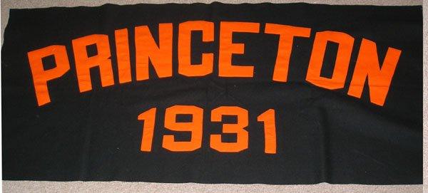 68 ½” x 31 ½”. Black felt with orange felt block lettering. Known for its accomplishments in athletics as well as academics, Princeton participated in what is seen as the first ever American Football game against Rutgers in 1869, thus marking the birth of one of the nation’s most popular sports. A great piece of memorabilia from one of America’s most historic universities! Fine condition.
