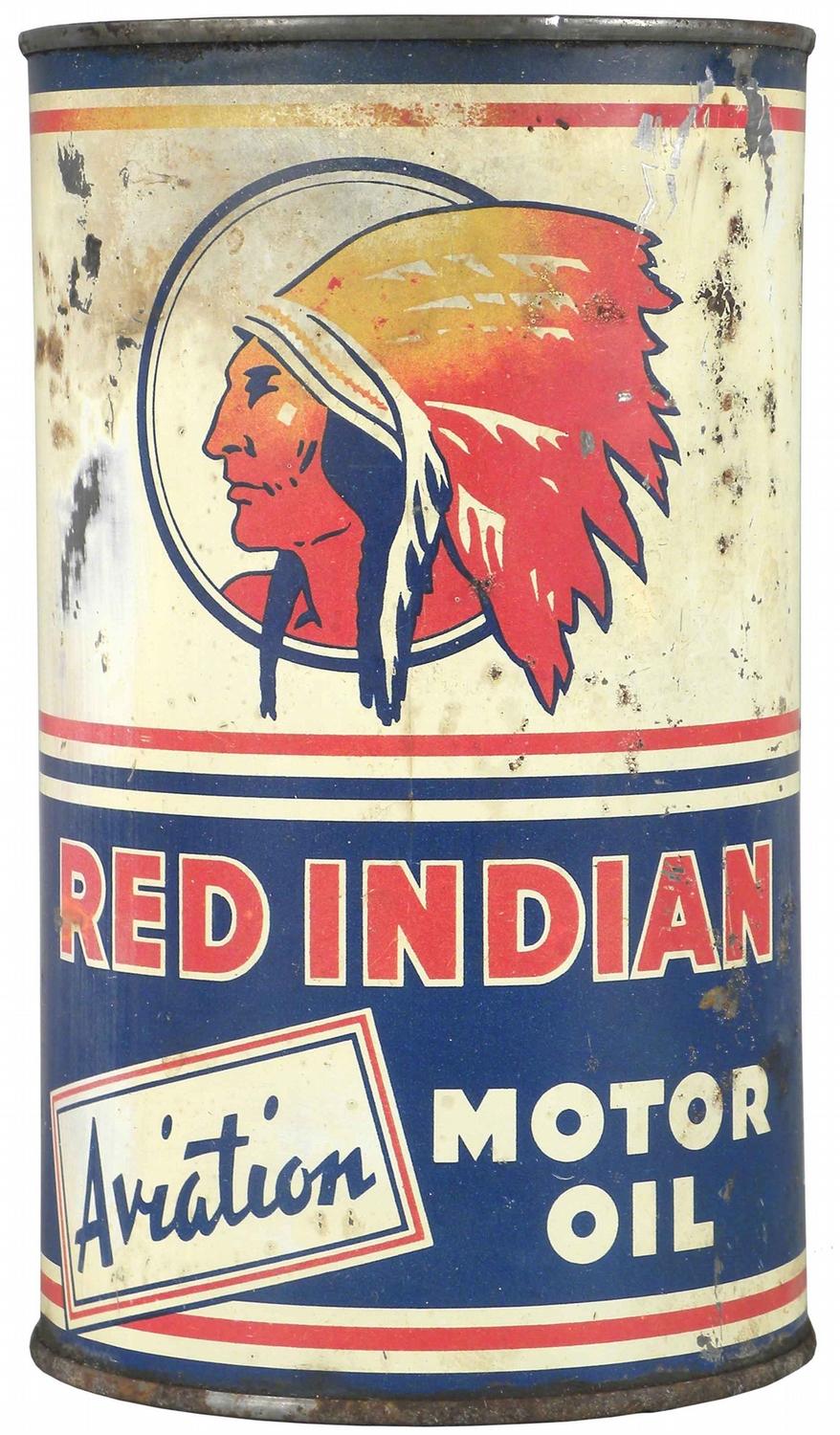 1931 Red Indian Aviation Motor Oil, one quart can. Some rust, scuffs and scratches. Fair to good condition.