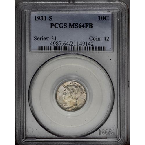 1931-S 10C MS64 Full Bands PCGS. Light, iridescent ste 1931-S[10C] MS64 Full Bands PCGS.