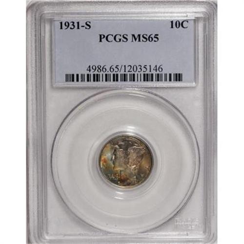 <B>1931-S 10C MS65 PCGS.</B></I> PCGS Population (79/35). NGC Census: (70/51). Mintage: 1,800,000. Numismedia Wsl. Price for NGC/PCGS coin in MS65: $167. (#4986)<BR><BR><B>Coin Engraver:</B> Adolph A. Weinman<BR><BR><b>Shipping:</b> Coins & Currency (<a target="_blank" href="http://www.heritageauctions.com/common/shipping.php">view shipping information</a>)