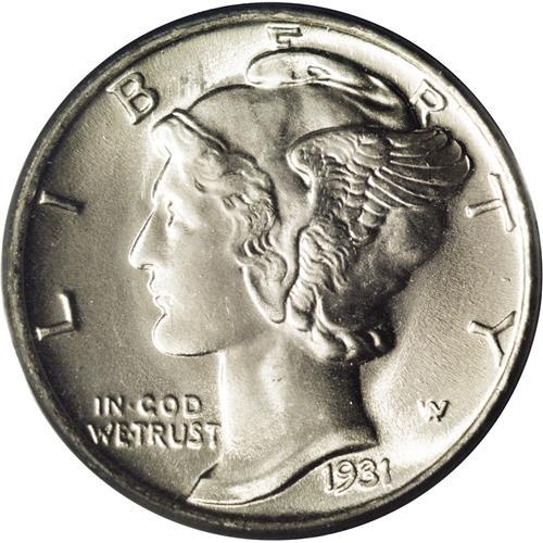 <B>1931-S<10C> MS66 Full Bands PCGS.</B></I> Blindingly bright luster over luscious silver-gold surfaces, beautifully struck and essentially lacking any mentionable distractions. A popular semi-key issue in the Mercury dime series, and one that, despite widespread hoarding in the 1930s and '40s, is seldom found with full split bands. Population: 32 in 66, 5 finer (4/06).