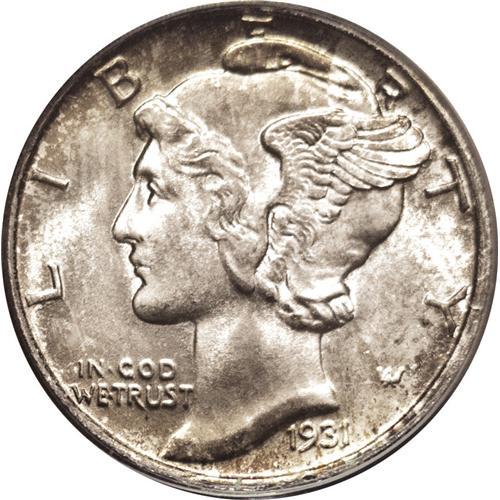 <B>1931-S<10C> MS66 Full Bands PCGS.</B></I> Unlike its P and D-mint contemporaries, the '31-S is infrequently encountered with razor sharp crossbands. In addition to this desirable feature, this moderately patinated example shows impeccable surface preservation. There is not a single abrasion that breaks the continuity of either the cartwheel sheen or the mottled tan-golden patina. Population: 33 in 66, 5 finer (6/06).<BR><I>From The Redfjord Collection.</B></I>