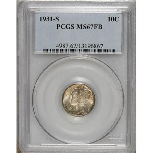 <B>1931-S 10C MS67 Full Bands PCGS.</B></I> Lange (2005) described the 1931-S dime as an issue: "Though generally well struck, with the exception of the central and lower diagonal bands, this date is challenging to locate in top grades." The 1.8 million pieces struck would be the last dimes coined at San Francisco until 1935, and as a result, most representatives reached circulation despite the Great Depression. <BR> Another passage in Lange describes the proportion of Full Bands survivors as "notably low," but this spectacular Superb Gem showcases the best of the issue. Cream and gold tints visit the shining centers, while the margins show speckled orange and russet patina. Decisively struck, shining, and carefully preserved. PCGS has graded just six examples as MS67 Full Bands, with no finer Full Bands pieces listed in the <I>Population Report</B></I> (10/07).<BR><BR><B>Coin Engraver:</B> Adolph A. Weinman<BR><BR><b>Shipping:</b> Coins & Currency (<a target="_blank" href="http://www.heritageauctions.com/common/shipping.php">view shipping information</a>)