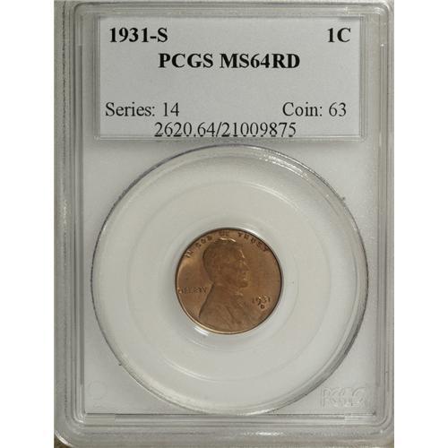 <B>1931-S 1C MS64 Red PCGS.</B></I> PCGS Population (1010/806). NGC Census: (848/482). Mintage: 866,000. Numismedia Wsl. Price for NGC/PCGS coin in MS64: $260. (#2620)<BR><BR><b>Shipping:</b> Coins & Currency (<a target="_blank" href="http://www.heritageauctions.com/common/shipping.php">view shipping information</a>)
