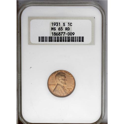 <B>1931-S<1C> MS65 Red NGC.</B></I> A sharply struck and unabraded orange-red example distinguished by the infrequent dash of carbon. This low mintage collector favorite is encapsulated in an early generation holder. <BR><BR><B>Important notice:</B> Heritage usually auctions material at the rate of 200-250 lots per hour. On some occasions eBay Live bid software or the Internet may not be able to keep up with the pace of the auction. We recommend placing a realistic absentee bid now as insurance to avoid disappointment. Occasionally the auctioneer may eliminate or reject an eBay Live bid, and the auctioneer may also reopen a lot after the close of the eBay live bidding (usually because we missed an audience bid), and may reject your bid even if it shows you as the winning bidder. By bidding via eBay Live, you agree that Heritage may award the lot to another bidder at its sole discretion under the circumstances described above or any other reasonable circumstances. Since eBay bids are not shown to us until we open the lot on the floor, we treat those bids just like floor bids. In most cases the floor responds before the eBay bid is presented to us, due to Internet lag time, so for consistency we have made it a policy that floor bids are always considered first over tie eBay live bids. Also please note that all Heritage lots purchased through eBay Live carry a 20% Buyer's Premium. Please make sure you read the Terms and Conditions before you bid. This lot is being auctioned in conjunction with a live floor auction by Heritage Galleries & Auctioneers. All final auction and invoice information will be supplied by Heritage Galleries & Auctioneers, and all other information should be considered preliminary. Lot:662 <BR><BR><B>Winning Notification and Billing:</B> After the FINAL session in this auction is complete, Heritage will send e-mail and snail mail invoices. This process normally takes several days. All final auction and invoice information will be supplied by Heritage Galleries & Auctioneers, and all other information should be considered preliminary. <BR><BR>This auction will be conducted on a live auction floor and over the Internet through eBay Live. If you choose to place an absentee bid, please take a moment to <font color='#0000ff'><u><a href='http://pages.ebay.com/liveauctions/help/before/laabsentee.html'>learn how eBay Live absentee bidding works</a></u></font><font color='#000000'>