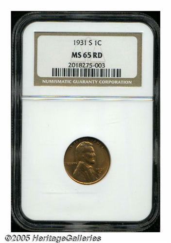 <B>1931-S<1C> MS65 Red NGC.</B></I> A shimmering Mint State example with rich orange-gold color and average or better sharpness for this well known Depression Era issue.