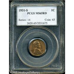 <B>1931-S 1C MS65 Red PCGS.</B></I> A pleasing example of this low mintage, semi-key issue. The surfaces show the usual mellowed red coloration but this piece is not extensively spotted as most examples are. Lot:5521