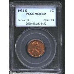 1931-S 1C MS65 Red PCGS. A shimmering reddish-golden example with a few speckles of obverse carbon t