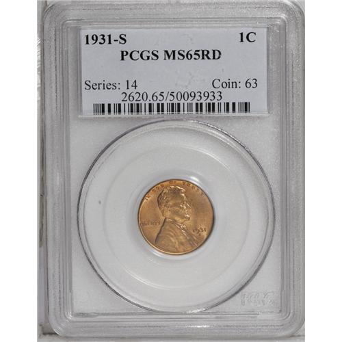 <B>1931-S<1C> MS65 Red PCGS.</B></I> Fresh red-copper surfaces and remarkably clean devices make this a Gem that has considerable eye appeal. A great example of this semi-key issue.<BR><I>From The New York Eye Appeal Collection.</B></I>