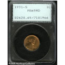 <B>1931-S 1C MS65 Red PCGS.</B></I> Sharply struck and lustrous, with one noticeable contact mark on the obverse, directly above the first 1 in the date, and a splash of russet-red patina on the lower reverse, near UNI OF. A pleasing Gem, housed in a first-generation PCGS holder. Lot:5524