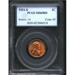 1931-S 1C MS65 Red PCGS. The surfaces display lighter coloration than usually seen on this issue. Th
