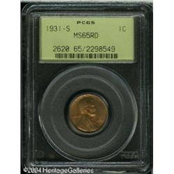 1931-S 1C MS65 Red PCGS. Well struck and lustrous, <B>1931-S 1C MS65 Red PCGS.</B></I> Well struck and lustrous, with a few noticeable marks and some light streaky patina on both sides. <BR><BR><B>Important notice:</B> Heritage usually auctions material at the rate of 200-250 lots per hour. On some occasions eBay Live bid software or the Internet may not be able to keep up with the pace of the auction. We recommend placing a realistic absentee bid now as insurance to avoid disappointment. Occasionally the auctioneer may eliminate or reject an eBay Live bid, and the auctioneer may also reopen a lot after the close of the eBay live bidding (usually because we missed an audience bid), and may reject your bid even if it shows you as the winning bidder. By bidding via eBay Live, you agree that Heritage may award the lot to another bidder at its sole discretion under the circumstances described above or any other reasonable circumstances. Since eBay bids are not shown to us until we open the lot on the floor, we treat those bids just like floor bids. In most cases the floor responds before the eBay bid is presented to us, due to Internet lag time, so for consistency we have made it a policy that floor bids are always considered first over tie eBay live bids. Also please note that all Heritage lots purchased through eBay Live carry a 20% Buyer's Premium. Please make sure you read the Terms and Conditions before you bid. This lot is being auctioned in conjunction with a live floor auction by Heritage Galleries & Auctioneers. All final auction and invoice information will be supplied by Heritage Galleries & Auctioneers, and all other information should be considered preliminary. Lot:5323