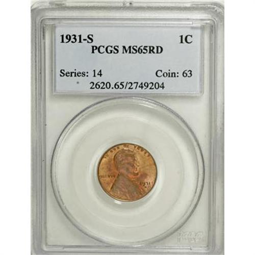 <B>1931-S 1C MS65 Red PCGS.</B></I> Typically struck with glowing luster and variegated purple-red and yellow-gold coloration. There are just two or three small contact marks on each side of the coin. <BR><BR><B>Coin Engraver:</B> Victor D. Brenner<BR><BR><b>Shipping:</b> Coins & Currency (<a target="_blank" href="http://www.heritageauctions.com/common/shipping.php">view shipping information</a>)