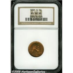 <B>1931-S 1C MS66 Red NGC.</B></I> The '31-S is one of the most popular Lincoln Cents due to its relatively low mintage (866,000 produced) and Depression-era date. This example is a lustrous copper-gold, with sharply struck motifs. The surfaces are devoid of any mentionable marks. Population: 18 in 66, 0 finer (2/05).