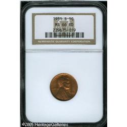 <B>1931-S 1C MS66 Red NGC.</B></I> This popular S-mint displays radiant orange-red patina. A few small toning spots in the right obverse field do not distract. Population: 18 in 66, 0 finer (1/05). Lot:5526