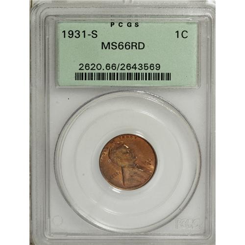 <B>1931-S 1C MS66 Red PCGS.</B></I> Both sides of this sharply struck Gem have brilliant orange luster with frosty surfaces. Quite a few of these have been graded at this level, but none have received a higher grade.<BR><BR><b>Shipping:</b> Coin/Currency (<a target="_blank" href="http://www.heritageauctions.com/common/shipping.php">view shipping information</a>)
