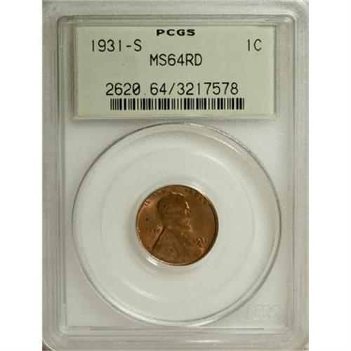 <B>1931-S 1C MS64 Red PCGS.</B></I> PCGS Population (1048/810). NGC Census: (434/245). Mintage: 866,000. Numismedia Wsl. Price for NGC/PCGS coin in MS64: $260. (#2620)<BR><BR><B>Coin Engraver:</B> Victor D. Brenner<BR><BR><b>Shipping:</b> Coins & Currency (<a target="_blank" href="http://www.heritageauctions.com/common/shipping.php">view shipping information</a>)