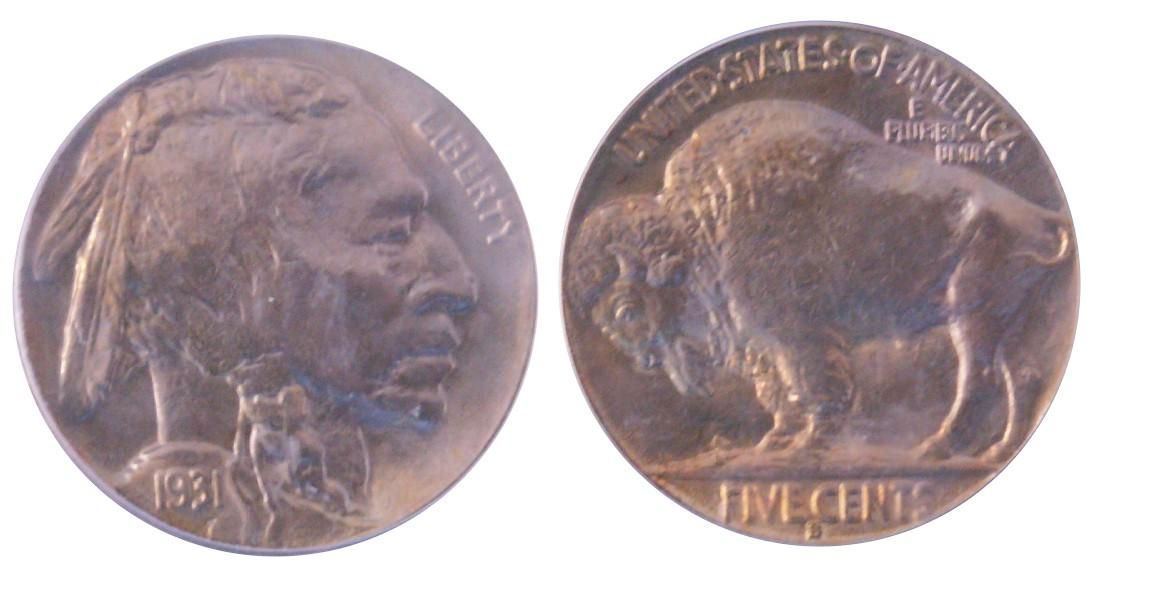 1931-S 5¢ PCGS MS66. Mirror like fields with light golden to green tint.