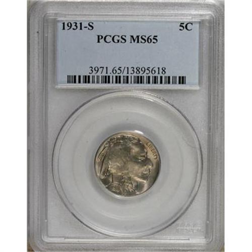 <B>1931-S 5C MS65 PCGS.</B></I> PCGS Population (1214/323). NGC Census: (615/68). Mintage: 1,200,000. Numismedia Wsl. Price for NGC/PCGS coin in MS65: $260. (#3971)<BR><BR><B>Coin Engraver:</B> James E. Fraser<BR><BR><b>Shipping:</b> Coins & Currency (<a target="_blank" href="http://www.heritageauctions.com/common/shipping.php">view shipping information</a>\)