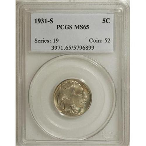 <B>1931-S 5C MS65 PCGS.</B></I> PCGS Population (1233/333). NGC Census: (616/69). Mintage: 1,200,000. Numismedia Wsl. Price for NGC/PCGS coin in MS65: $260. (#3971)<BR><BR><B>Coin Engraver:</B> James E. Fraser<BR><BR><b>Shipping:</b> Coins & Currency (<a target="_blank" href="http://www.heritageauctions.com/common/shipping.php">view shipping information</a>)