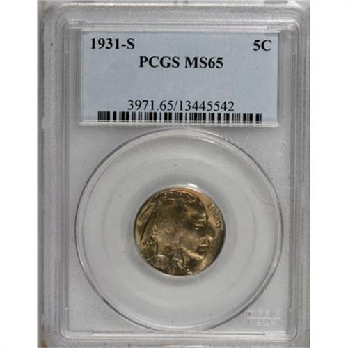 <B>1931-S 5C MS65 PCGS.</B></I> PCGS Population (1254/342). NGC Census: (614/70). Mintage: 1,200,000. Numismedia Wsl. Price for NGC/PCGS coin in MS65: $260. (#3971)<BR><BR><B>Coin Engraver:</B> James E. Fraser<BR><BR><b>Shipping:</b> Coins & Currency (<a target="_blank" href="http://www.heritageauctions.com/common/shipping.php">view shipping information</a>)