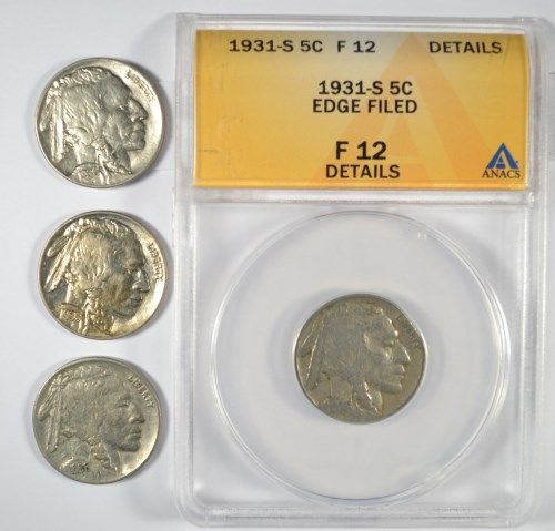 1931-S ANACS FINE 12 DETAILS & 3-1936 "GRADING SET" (VF,XF,AU) BUFFALO NICKELS