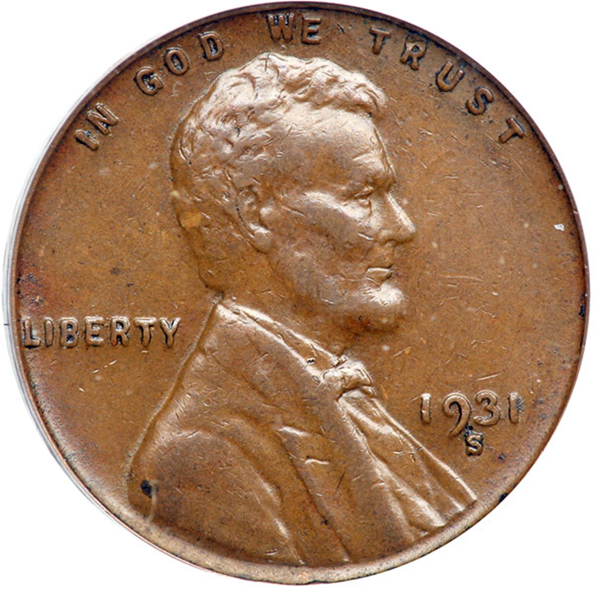 1931-S Lincoln Cent. PCGS graded EF-45. A glosssy brown example (PCGS # 2618) .