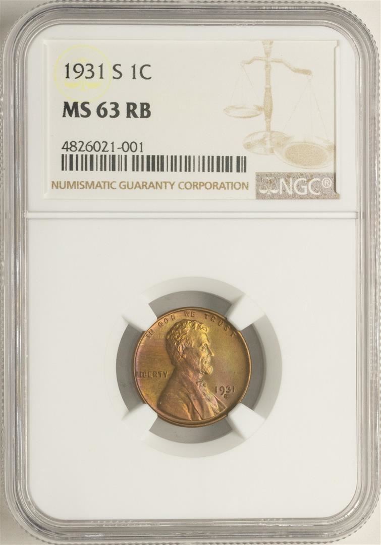 One 1931-S Lincoln Wheat Cent Coin NGC MS63 RB. NGC Certified.