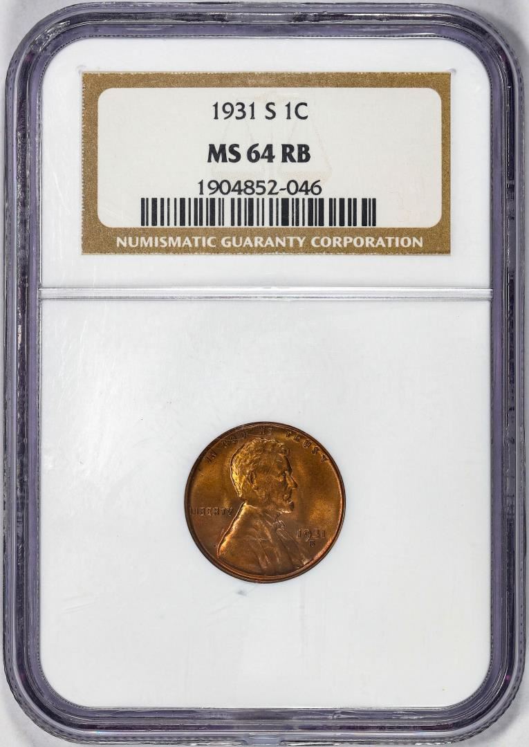 One 1931-S Lincoln Wheat Cent Coin NGC MS64RB.