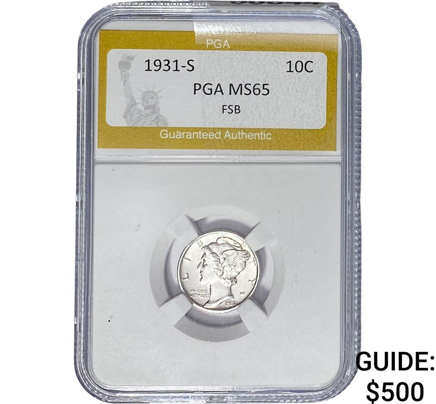 1931-S Mercury Silver Dime PGA MS65 FSB