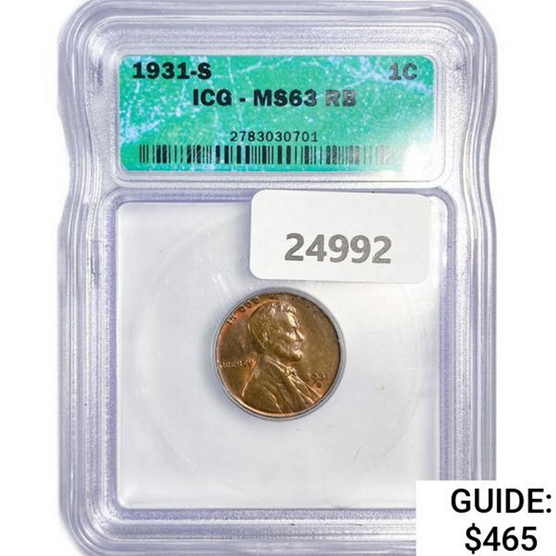 1931-S Wheat Cent ICG MS63 RB