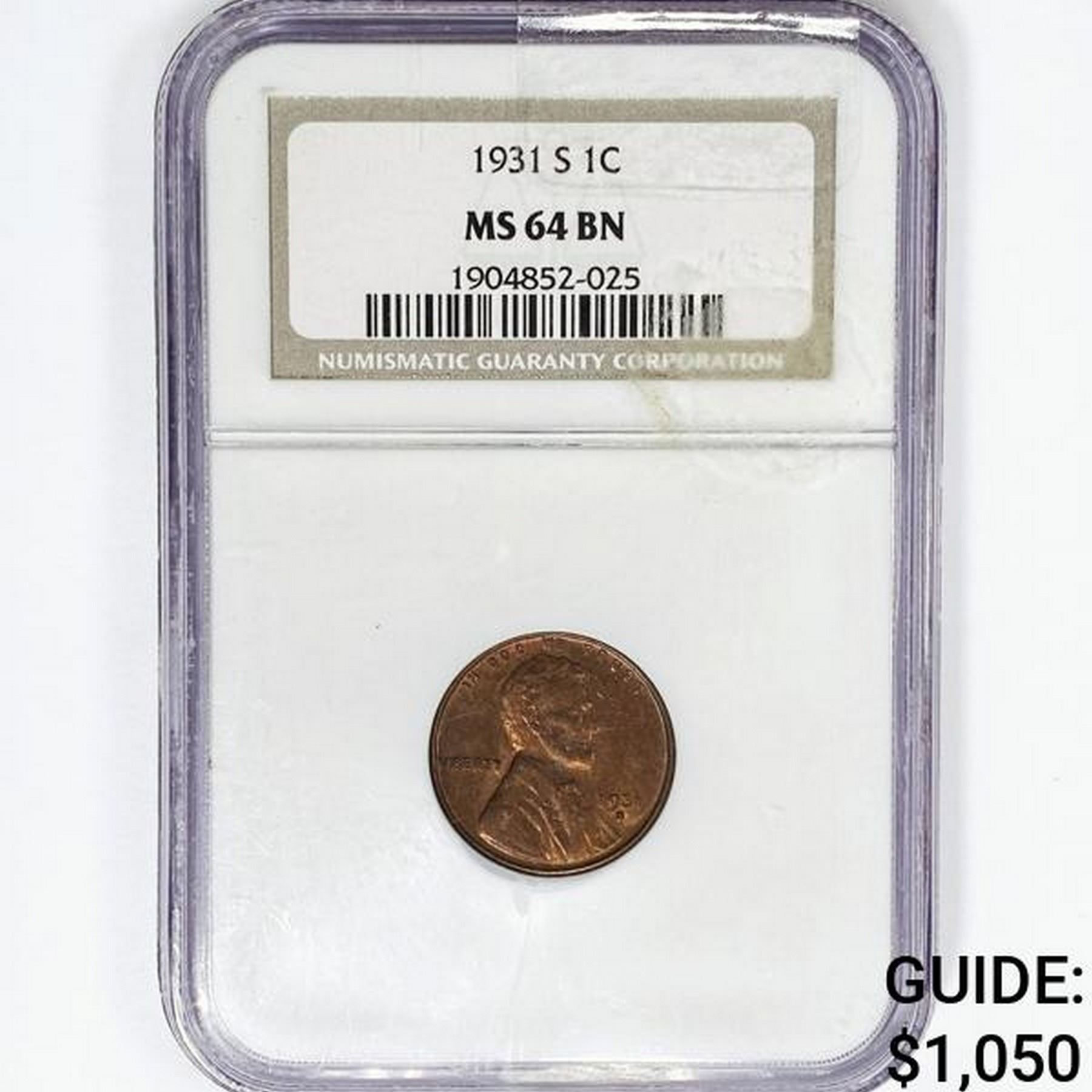 1931-S Wheat Cent NGC MS64 BN