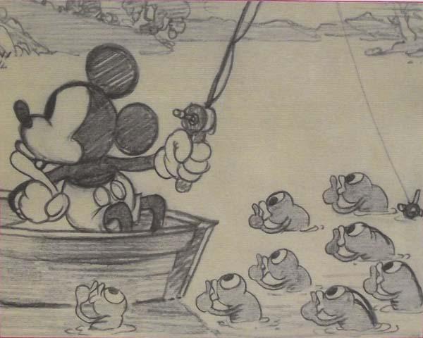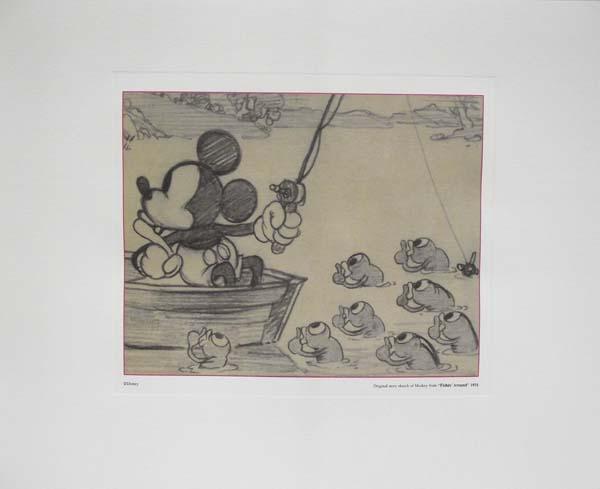 1931, Walt Disney Original Sketch Mickey Mouse. Original story ketch from ''Fishing Around'' cartoon. 8''L x 6.25'' H. Buyers Pay Actual Shipping and Handling Charges(see terms and conditions for more information)