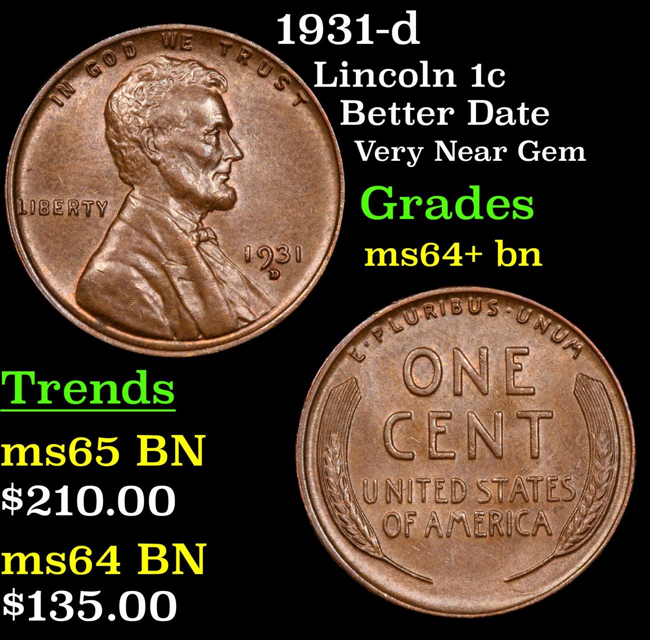 1931-d Better Date Very Near Gem Lincoln Cent 1c Grades Choice+ Unc BN.