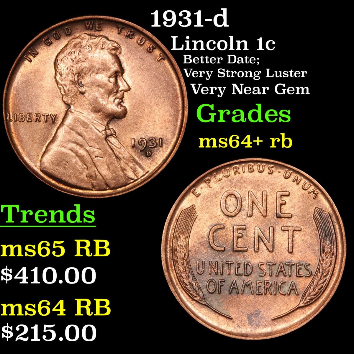 1931-d Better Date; Very Strong Luster Very Near Gem Lincoln Cent 1c Grades Choice+ Unc RB.