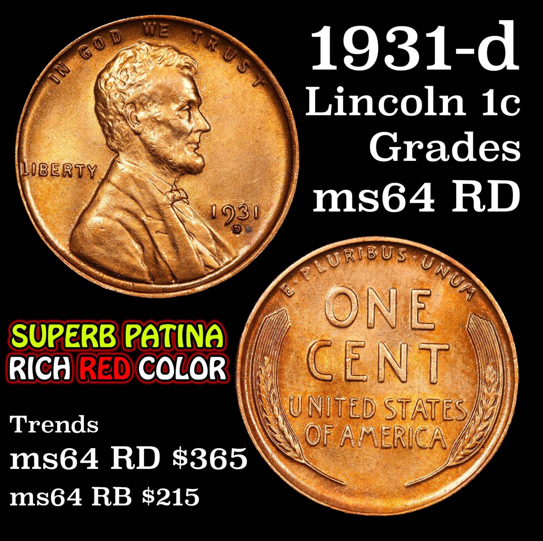 1931-d Lincoln Cent 1c Grades Choice Unc RD.