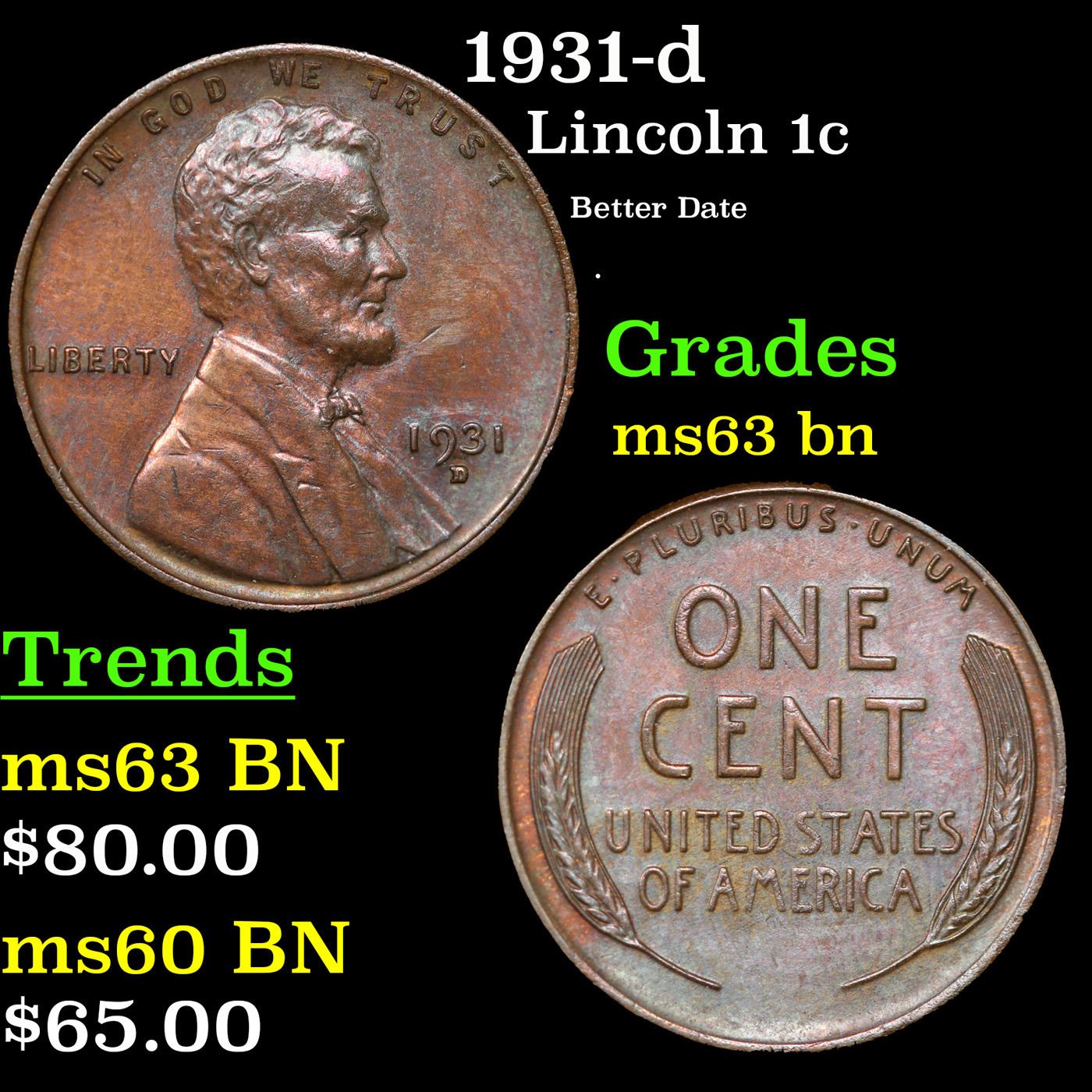 1931-d Lincoln Cent 1c Grades Select Unc BN.